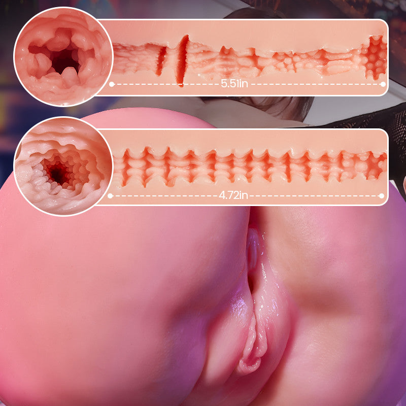 Dual-channel design, with a vaginal depth of 5.5 in and anal depth of 4.7 in, plump and elastic, perfect for all penis sizes for a snug and stimulating fit.
